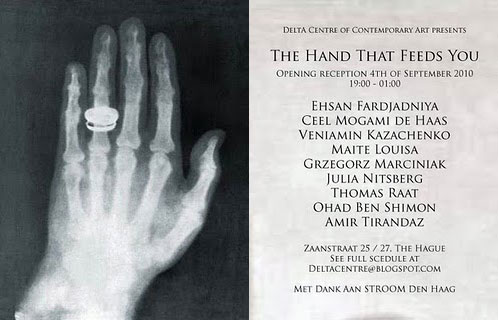 You'll see the coming show is not a conventional exhibition, where you invite a bunch of artists whom you like and they hang their works up and there is the opening and then... No. The participating artists of any discipline, it can be a writer, composer, photographer, has to redefine his practise, reformulate himself, to position self in society. This is an attempt to develop and correct to a certain extent the conception of the artist and art initiative in the eyes of the beholder, in the eyes of the civil servant, the officer, the council of the prosecution. The title of the show indicates questions like 'who is the hand that feeds you?', or 'what do you do to the hand?' and is meant to criticise or debate the position of the institute and the functionality of, in this case the new DeltA Centre of Contemporary Art.